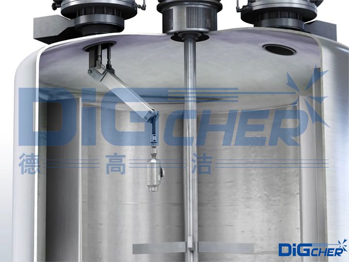 德高潔反應釜清洗系統自動化程度高,清洗一臺反應釜大約只需要15 min;由于三維旋轉噴頭與伸縮桿的復合運動,高壓水射流可以覆蓋反應釜內任何位置,完成反應釜的360°無死角清洗。