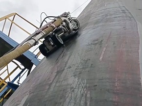 立式儲油罐是儲存油品的容器,基本上是采用吊籃或搭腳手架,由人工持手動工具除銹,或噴砂除銹。德高潔RC360W-MG280儲罐除銹機器人,采用爬壁機器人搭載除銹清洗器作業,適用于大面積鋼制表面除銹工作,可同時解決行走、附壁、射流三個問題。[查看詳情]