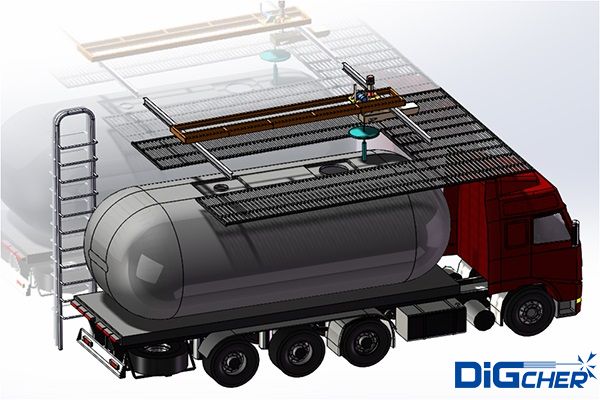 4、罐車停到清洗工位后,三坐標(biāo)軌道對(duì)位機(jī)構(gòu)可以在X和Y方向調(diào)整,以便清洗機(jī)構(gòu)可以對(duì)正罐口。或者在棧橋左右兩側(cè)停車工位之間轉(zhuǎn)換,提高清洗機(jī)構(gòu)使用效率;